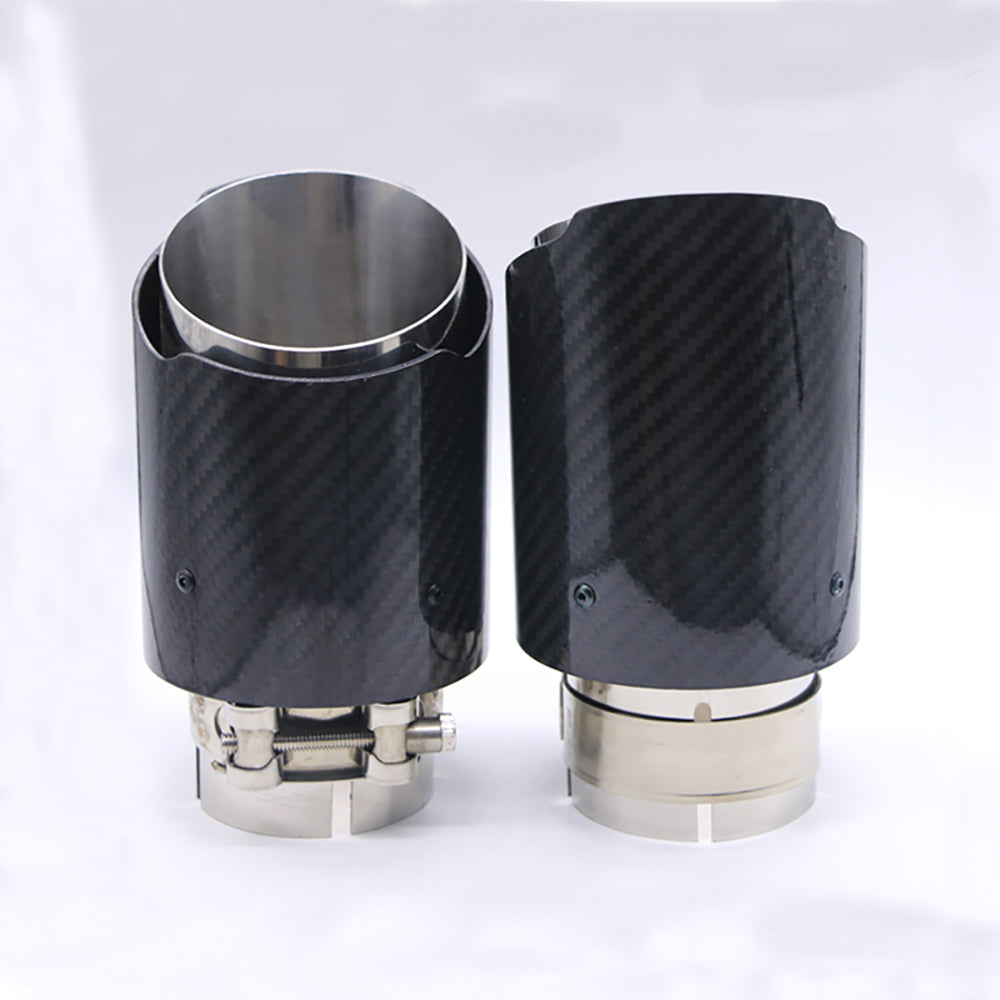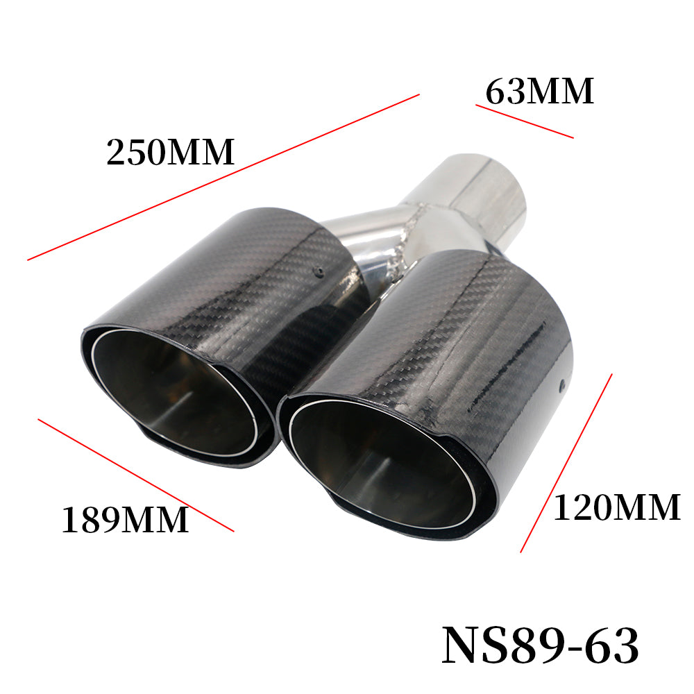 - 1 x Exhaust Tip 63mm Carbon Fiber Dual black Double Angle-cut Tip NS89-63L